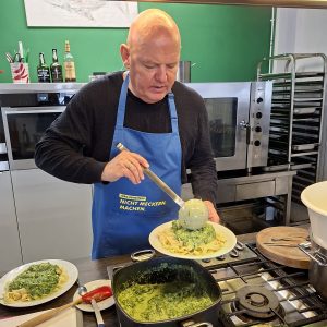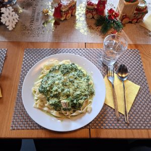 Währenddessen entsteht am Herd ein schnelles, ehrliches Gericht: Bandnudeln mit Spinat-Gorgonzola-Soße und Lachs. Denn auch beim Kochen gilt: Gute Grundlagen entscheiden über das Ergebnis.